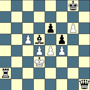 немногочисленных сил. Все три фигуры ограничены в перемещениях: слон закрыт пешками, конь связан